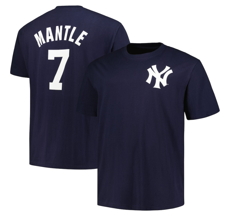 - Adult Men's Mickey Mantle Yankees Profile Big & Tall Cooperstown Collection Player Name & Number baseball T-shirt - Navy