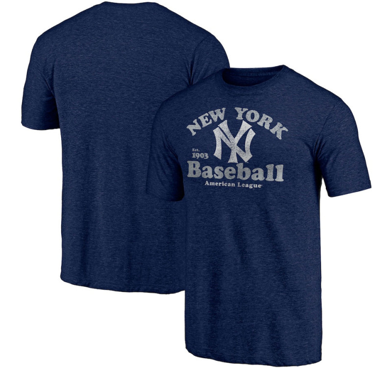 - Adult Men's Yankees Baseball Cooperstown Collection True Classics Tri-Blend baseball T-shirt - Heathered Navy