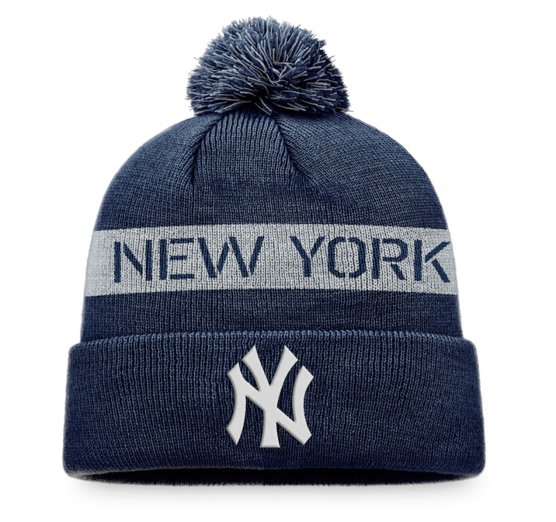 - Adult Men's Yankees Baseball League Logo Cuffed Knit Hat with Pom - Navy/Gray