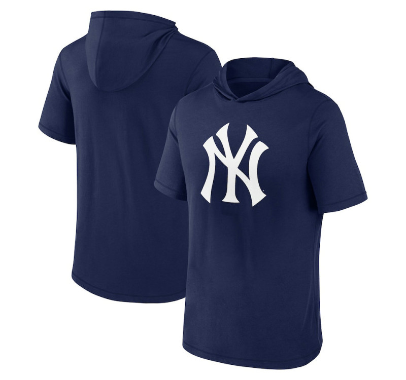 - Adult Men's Yankees Baseball Short Sleeve baseball Hoodie baseball T-shirt - Navy