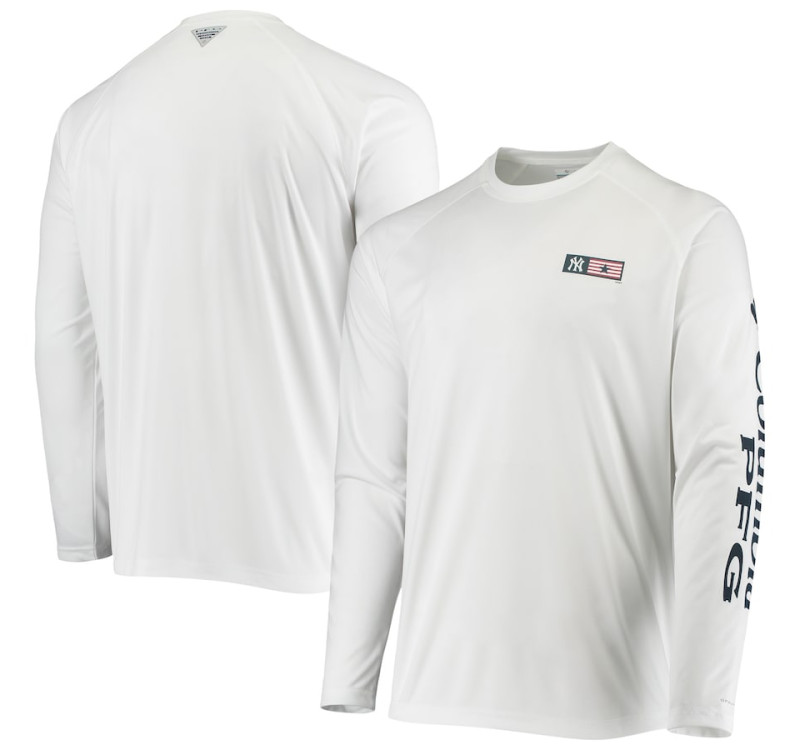 - Adult Men's Yankees Columbia Americana Terminal Tackle Omni-Shade Raglan Long Sleeve baseball T-shirt - White