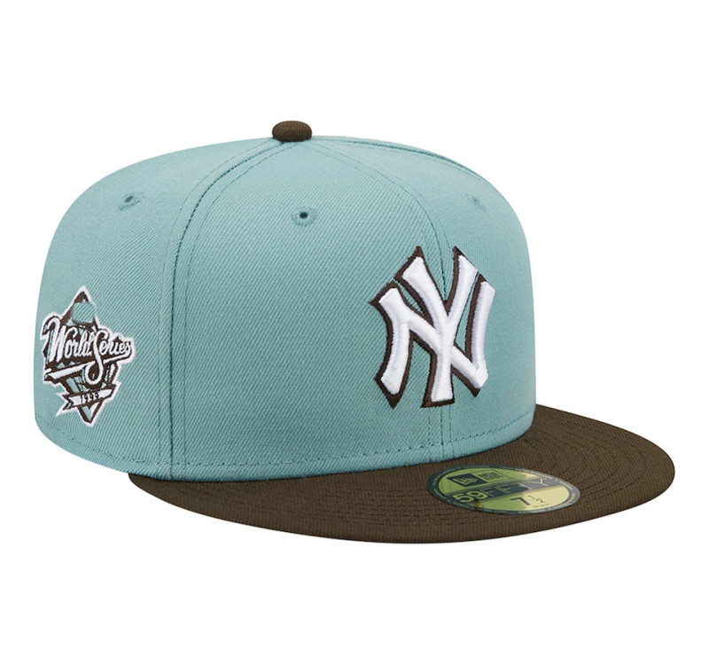 - Adult Men's Yankees New Era 1999 World Series Beach Kiss 59FIFTY Fitted Hat - Light Blue/Brown