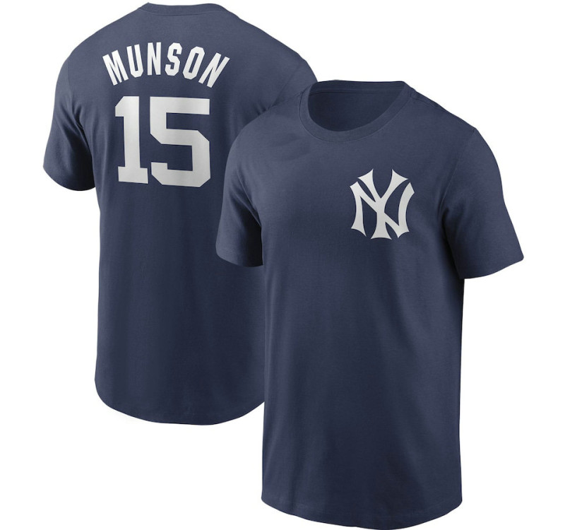 - Adult Men's Thurman Munson Yankees Cooperstown Collection Name & Number baseball T-shirt - Navy
