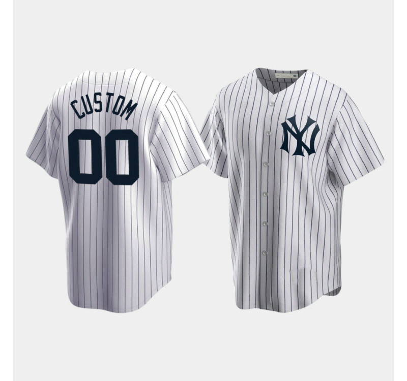 - Mens Yankees #00 Custom Cooperstown Collection Home White Jersey