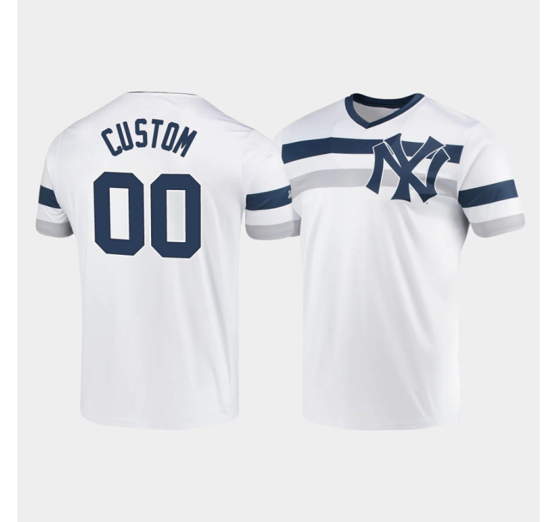 - Mens Yankees #00 Custom White Cooperstown Collection V-Neck Jersey