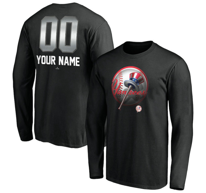 - Customize Men's Yankees Baseball Midnight Mascot Long Sleeve baseball T-shirt - Black