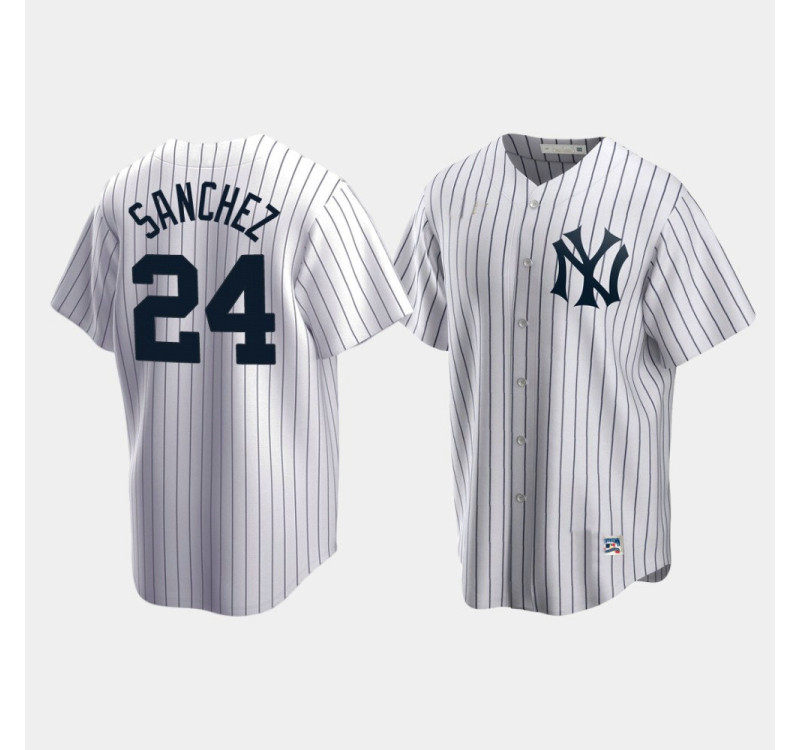 - Mens Yankees #24 Gary Sanchez Cooperstown Collection Home White Jersey