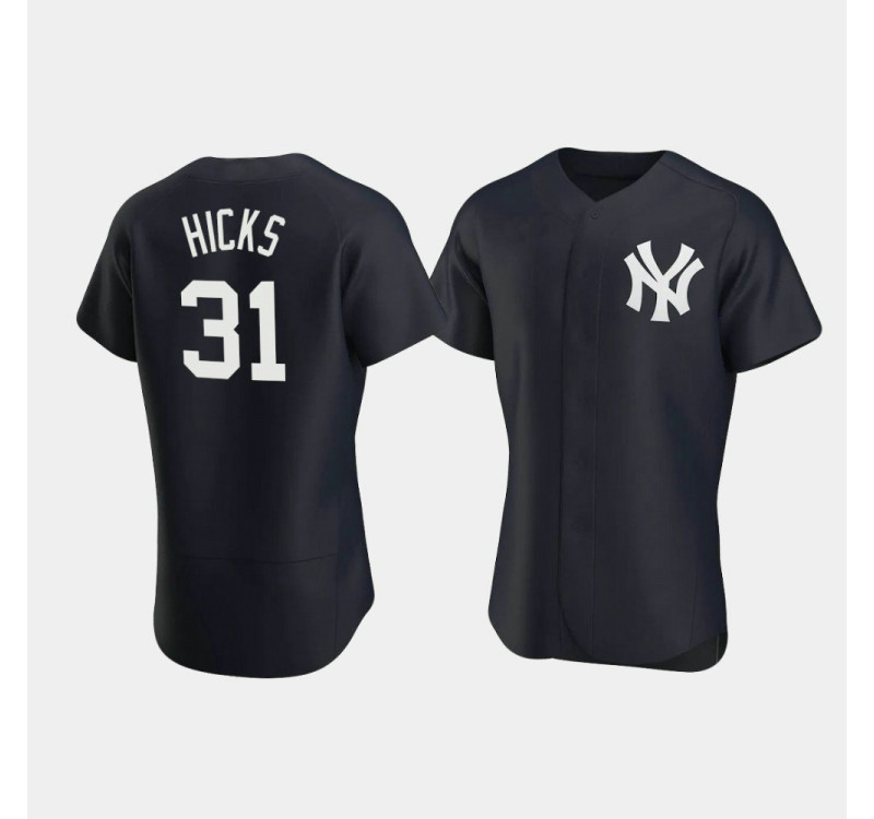 - Mens Yankees #31 Aaron Hicks Navy Authentic Team Logo 2020 Alternate Jersey