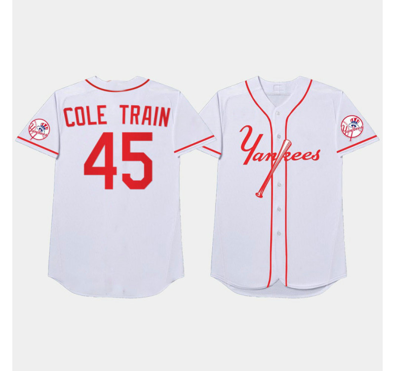 • Mens Yankees #45 Gerrit Cole 2021 Players Weekend Nickname White Jersey