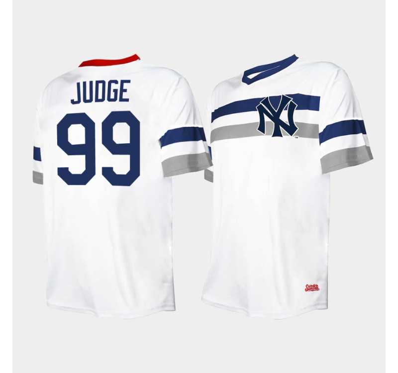 - Mens Yankees #99 Aaron Judge Cooperstown Collection V-Neck White Jersey