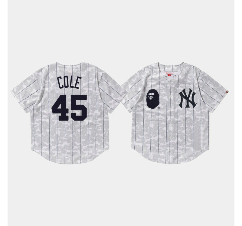 - Mens Yankees Gerrit Cole #45 White BAPE x Mitchell & Ness Jersey