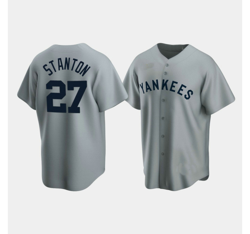 - Mens Yankees #27 Giancarlo Stanton Cooperstown Collection Road Gray Jersey