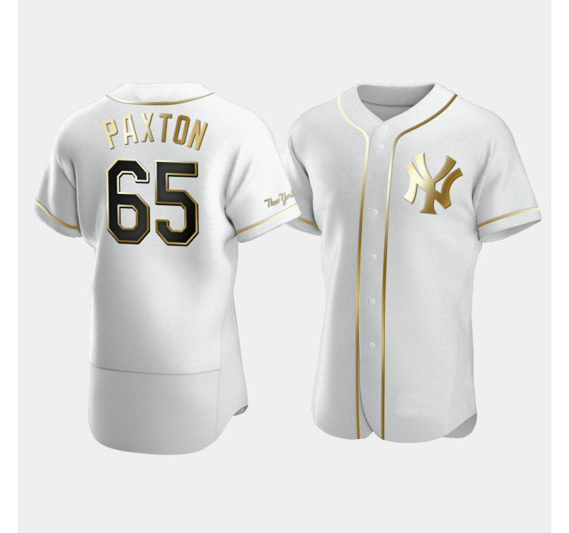 - Mens Yankees James Paxton #65 White Golden Edition Authentic Jersey