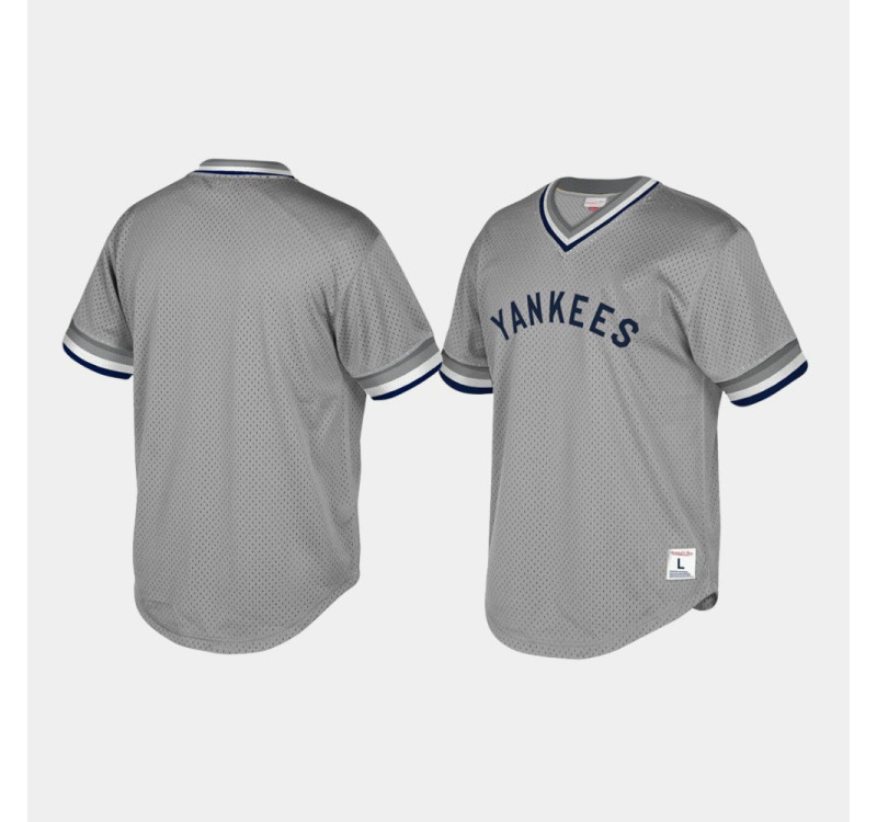 - Yankees Cooperstown Collection Mesh Wordmark V-Neck Gray Mitchell & Ness Jersey Mens