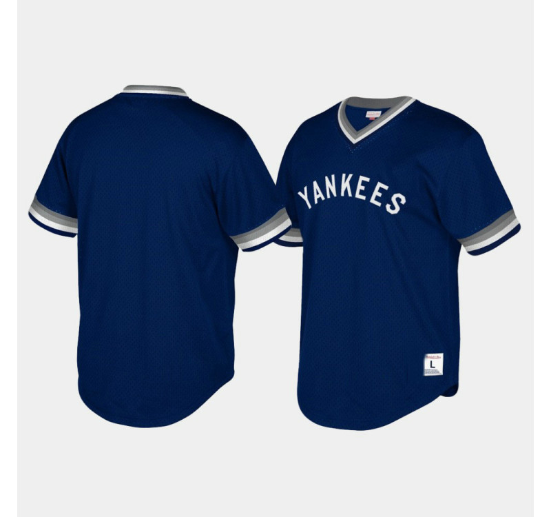 - Yankees Cooperstown Collection Mesh Wordmark V-Neck Navy Big & Tall Jersey Mens