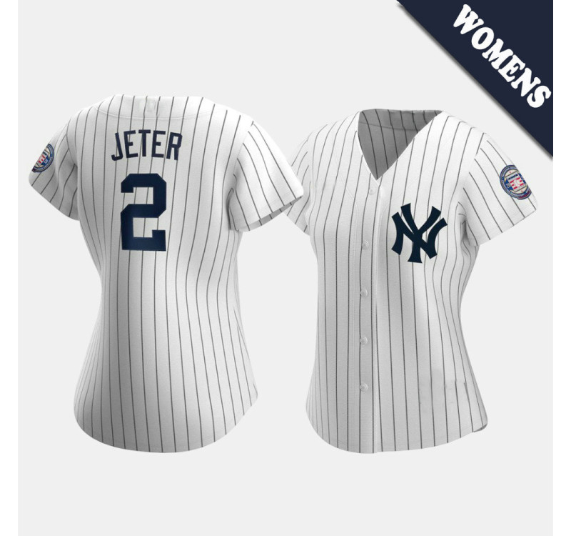 - Womens Yankees Derek Jeter #2 White Navy 2020 Hall of Fame Induction Replica Home Jersey